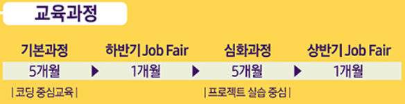 기업이 요구하는 수준의 역량레벨을 파악하고, 실무적인 커리큘럼을 짜서 교육생들에게 교육을 제공하고 6개월마다 취업의 기회를 제공해 줍니다. 또 상/하반기 5개월에 걸쳐 교육을 하고 이후 6개월차에 또 취업을 매칭해줍니다. 한마디로 될 때까지 도움을 주는 것입니다.