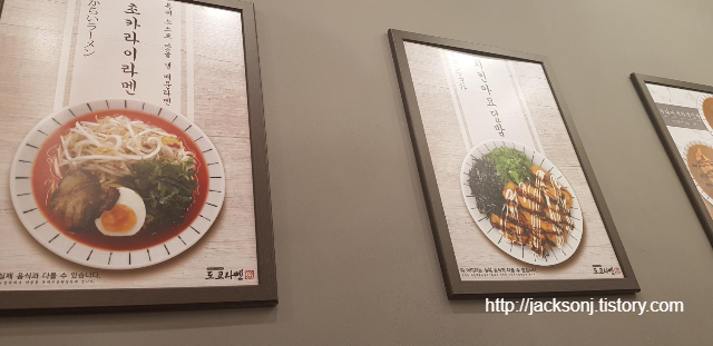 벽면에는 간단한 메뉴 소개 POP와 일본 느낌나는 인테리어가 기억에 남네요.