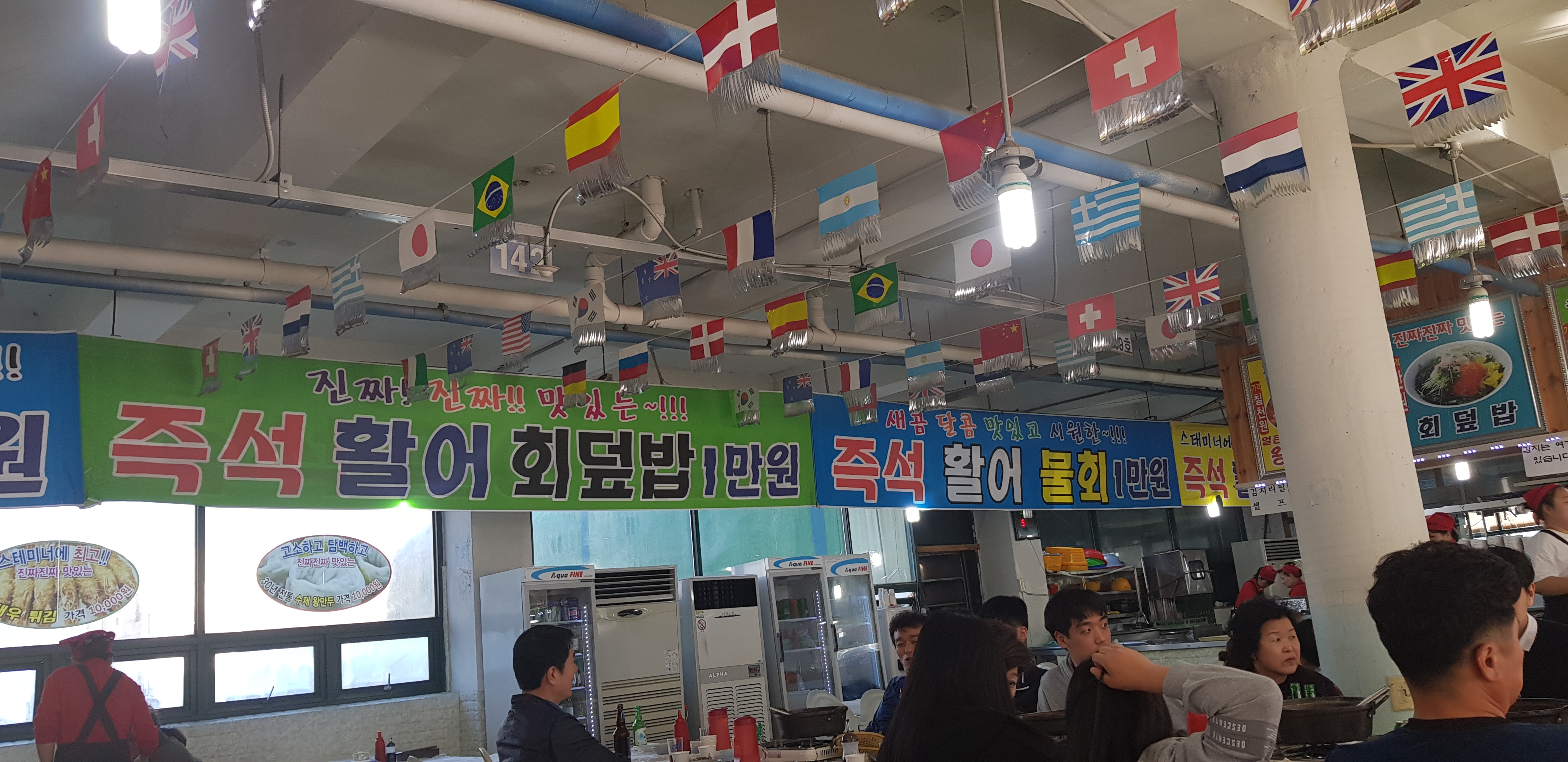 아래는 궁평항 수산물직판장 전경입니다. 아시는 바와 같이 횟감을 고르면 약간의 상차림비를 받고, 회도 떠주고 탕도 끓여주고 하는 그런 구조이지요.
