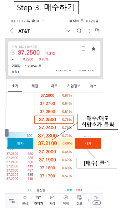 2) 이제 미국주식(AT&T) 매수주문 걸어볼까?