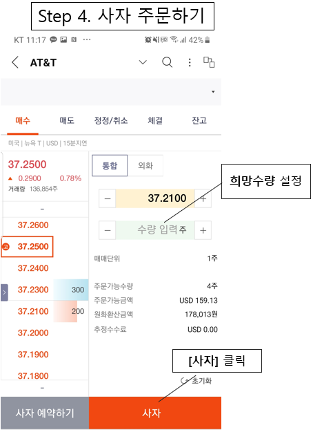 2) 이제 미국주식(AT&T) 매수주문 걸어볼까?