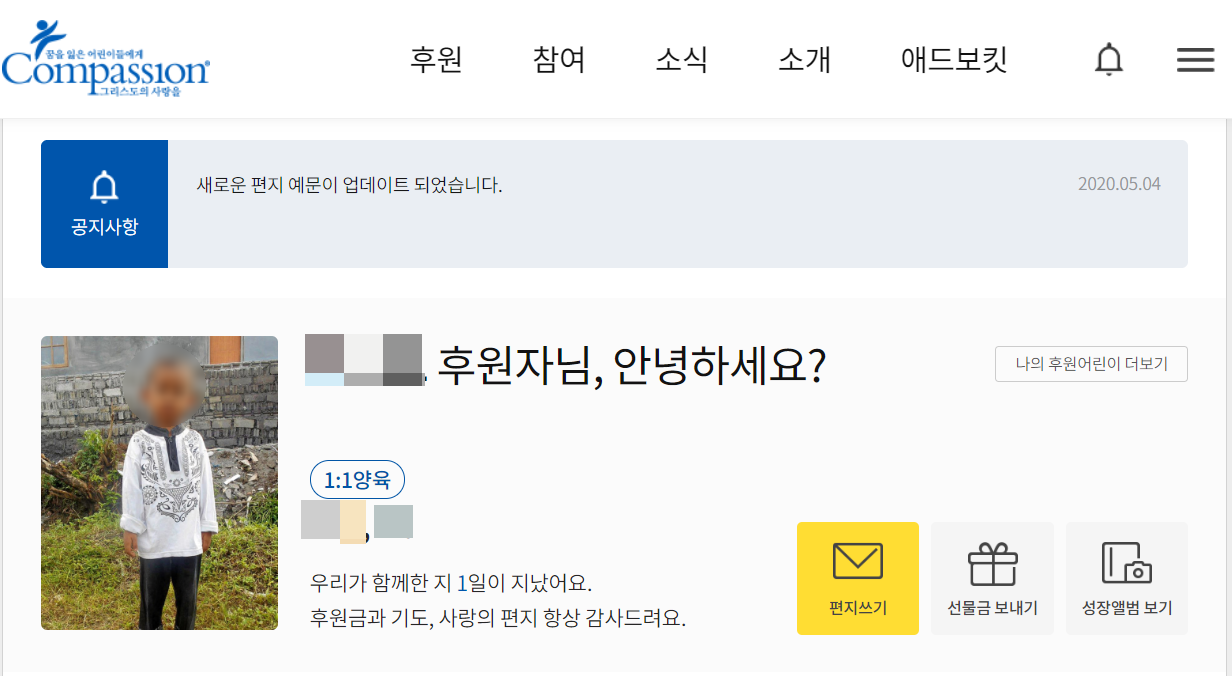 한국 컴패션과 함께 어린이 후원 시작(컴패션 코리아, 정기 후원, 기부)