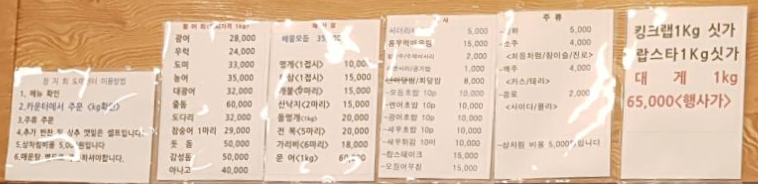 - 그 외에도 해물류로 해삼/멍게/개불/산낙지/전복/가리비/문어 등을 취급하고 있네요