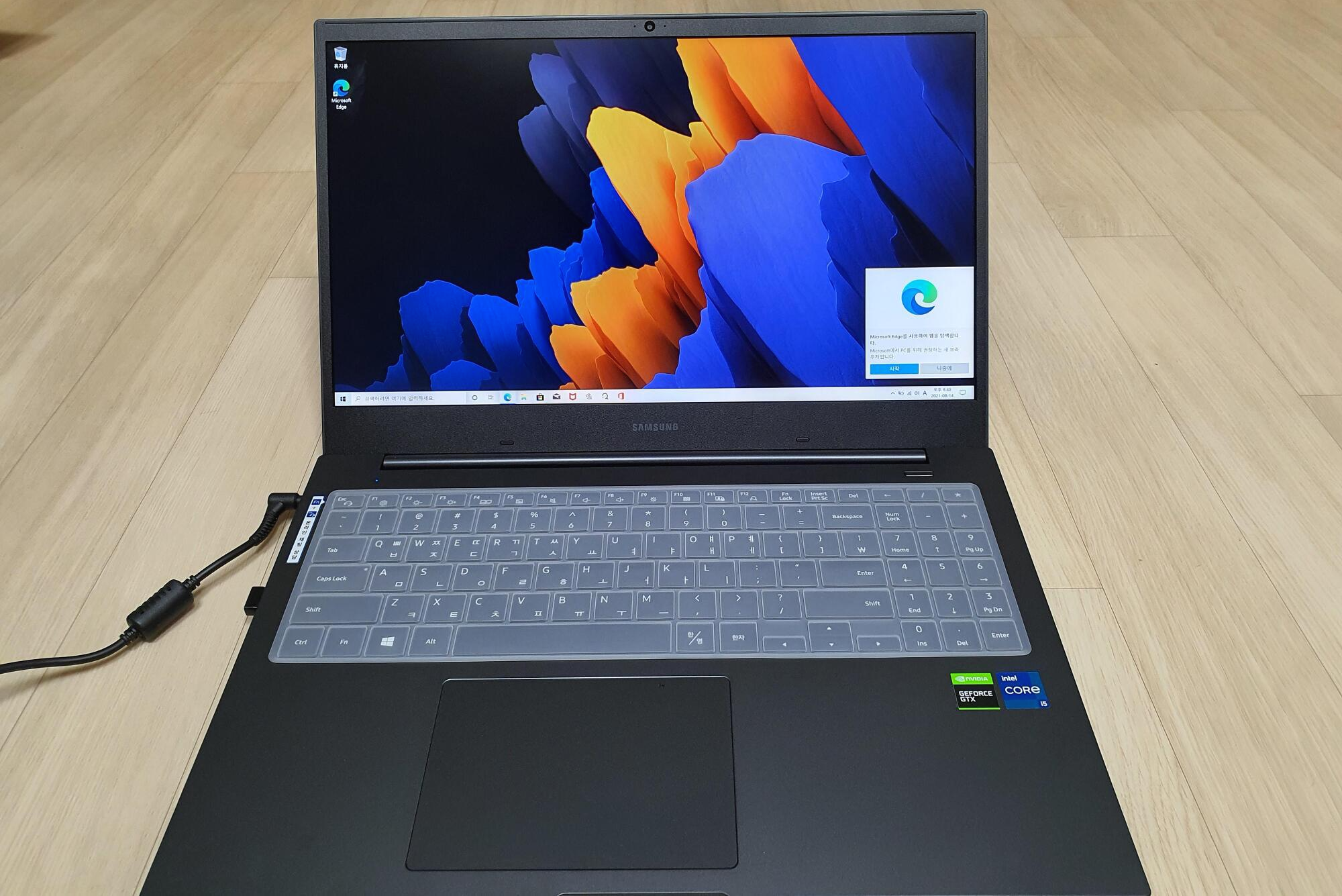 이제 노트북을 펼쳐 보겠습니다. 키 커버가 포함이 되어있네요.