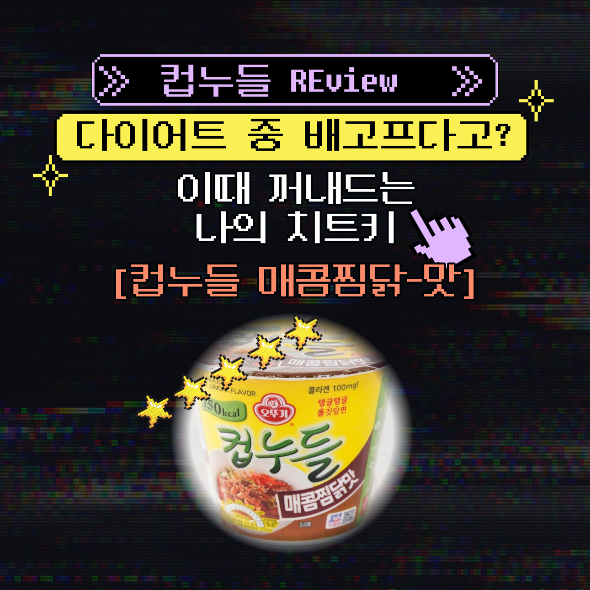여러분도 출출한 초저녁에 일반 라면, 컵라면, 과자의 유혹에 빠지지 마시구 저처럼 컵누들 매콤찜닭맛을 먹고 150칼로리에 선방해보는건 어떠신가요? (단 2개 먹으시면 곤란합니다. 1개만 먹기)