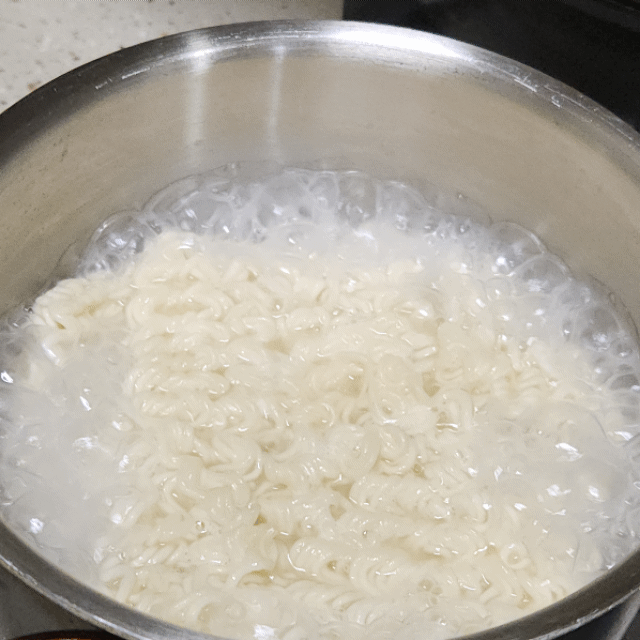 이제 물을 올려봅니다. 30여년간 비빔면을 즐겨온 익숙한 솜씨로 면을 삶습니다.