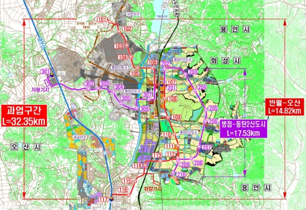 - 👉 오산시 일부 구간을 지하에서 지상으로 변경해 공사비 절감 & 연장 34.4km로 조정.