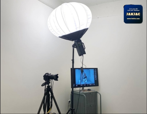 촬영은 흰 배경의 셀프 촬영으로 진행됩니다. 삼각대, 리모컨, 실시간 모니터링 화면, 조명, 그리고 앉거나 기대어 촬영할 수 있도록 스툴이 높이 별로 있었습니다. 여러 장비가 갖춰져 있어 촬영이 어렵지 않았고, 작가님께서 세팅과 보정까지 도와주셨어요.