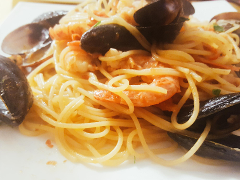 아래는 점심으로 먹은 파스타와 피자입니다. 맛은? Good!
